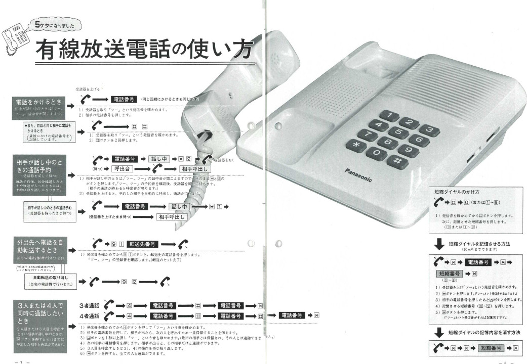 平成の大改修で新施設となり、新しく導入されたのがテレホンサービスだ。お知らせや農作業メモ、当直医など聞き逃した放送を必要な時に聞くことができるようサービスが向上した。デジタル2ウェイ共同加入方式となり、新しくなったプッシュ式の電話機は多機能化していった。例えば、通話予約や外出先への転送、3人または4人での同時通話など最先端技術を生かした機器として長年町民のくらしを支えることとなった。
