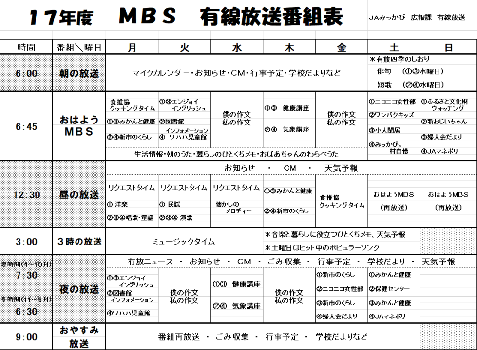 人との連帯を強めることを目的に発足した有線放送では、子供から大人まで幅広く地域の人達に参加してもらうことを意識して番組作りを行っていた。なかでも、園児の自己紹介と歌で構成された「朝のうた」、小学生が自分の作文を読む「僕の作文・私の作文」、幼児とその保護者が登場する「ワンパクキッズ」など町内の子供たちが登場する番組は人気があり、親子三世代で楽しめるコンテンツとして定着、長寿番組となった。