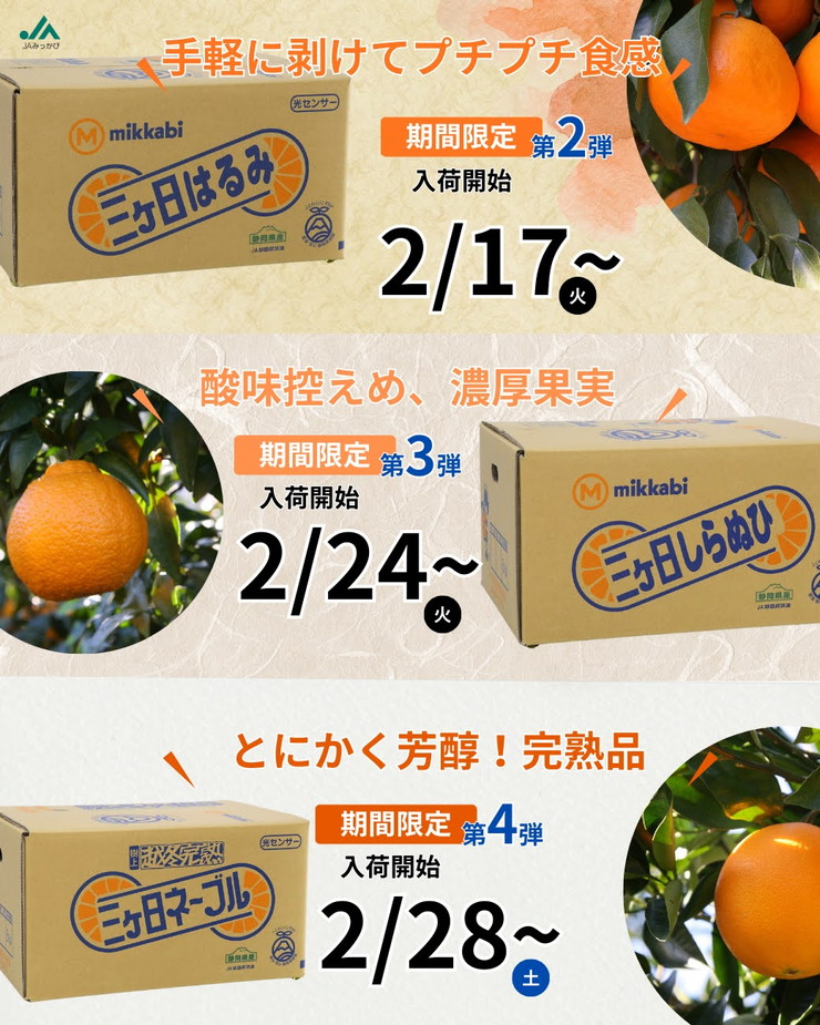 「三ヶ日みかん」に加え、季節の柑橘が順次入荷いたします。